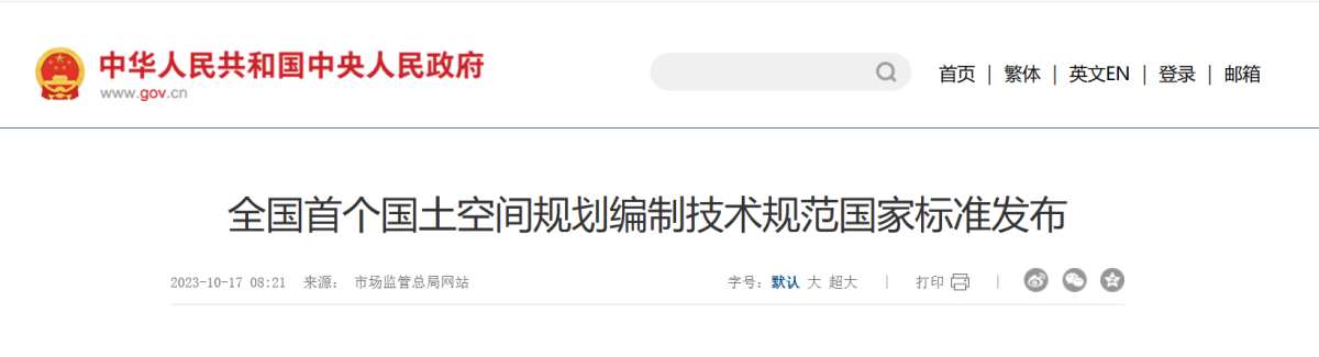 2023Äê9ÔÂ7ÈÕ£¬¹ú¼Ò±ê×¼»¯ÖÎÀíίԱ»áÅú×¼Ðû²¼¡¶Ê¡¼¶ÁìÍÁ¿Õ¼ä¼Æ»®ÌåÀý¼¼Êõ¹æ³Ì¡·¹ú¼Ò±ê×¼£¨GB/T 43214-2023£¬ÒÔϼò³Æ¡¶¹æ³Ì¡·£©£¬¸Ã±ê×¼ÊÇÈ«¹úÊ׸öÁìÍÁ¿Õ¼ä¼Æ»®ÌåÀý¼¼Êõ¹æ·¶¹ú¼Ò±ê×¼£¬½«ÓÚ2024Äê1ÔÂ1ÈÕÆðʵʩ¡£